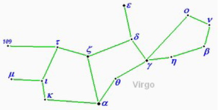 α Vir i θ Vir formiraju bluzu, α Vir, ζ Vir, τ Vir, ι Vir, and κ Vir predstavljaju