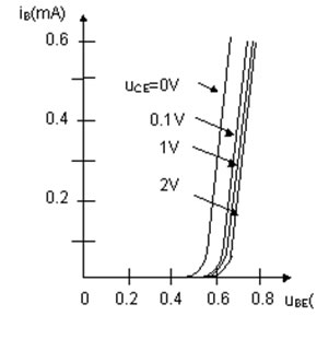 Za određivanje ulazne karakteristike tranzistora posmatra se kako ulazna struja IB ovisi o ulaznom naponu UBE, pri konstantnom izlaznom naponu UCE. Ova karakteristika obja.njava kako će se opteretiti izvor signala, ako se spoji na ulazni krug. Ovisnost ulazne struje IB o ulaznom naponu UBE prikazan je ulaznom karakteristikom na slici 3.