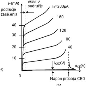 napona UCE struja kolektora malo povećava. Ic=f(IB)UCE=const.