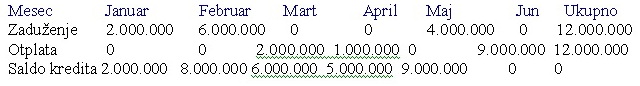 i ukalkulisanih obaveza + 144.000 din kamater na kreditna sredstva).