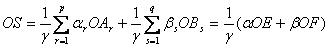 Najzad, ako su i sistemi koordinata dve različite tačke A i B u odnosu na dati reper prostora A dimenzije n i , prema (2), ada su i koordinate baricentra S ponderisanih tačaka ( ) i ( ) određene sa