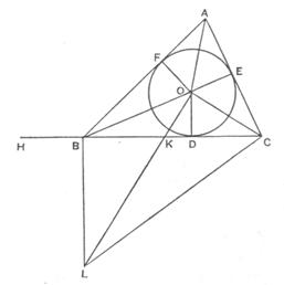 odnosa AB/AC. Uglovi naspram centra O na strani AB su 40o i respektivno,