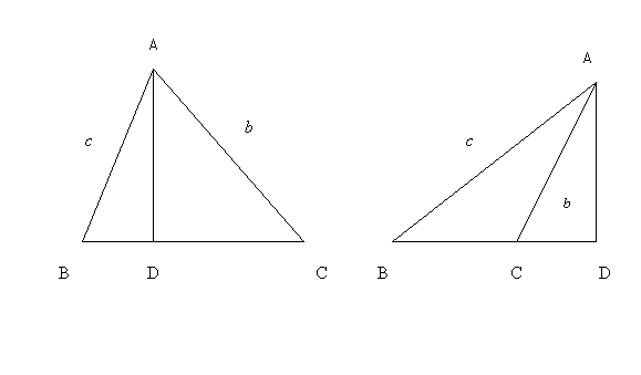 U slučaju trougla sa oštrim uglom kod C (tupim uglom kod C, respektivno)