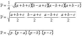 Pokušajmo da, iz ovog primera, izvedemo Heronovu formulu za izračunavane